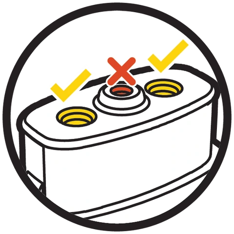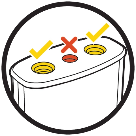 Insert a blunt tip 16 to 20 gauge needle into one of the two filling holes on either side of the center airway.